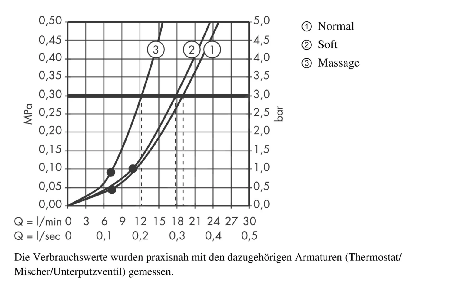 - quantità di portata del getto normale (a 0,3 MPa): 19 l/min