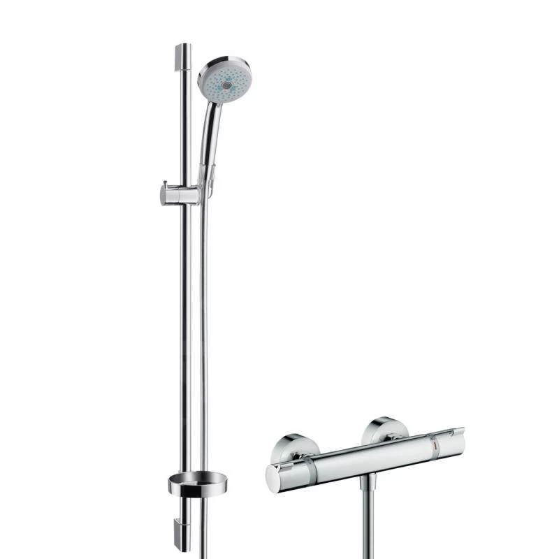 Questo set di alta qualità Hansgrohe Combi offre il meraviglioso piacere della doccia. La doccia ergonomica Croma 100 Multi è circolare, piatta e si combina facilmente. Il soffione doccia con diametro di 100 mm dispone di tre tipi di getto d’acqua,