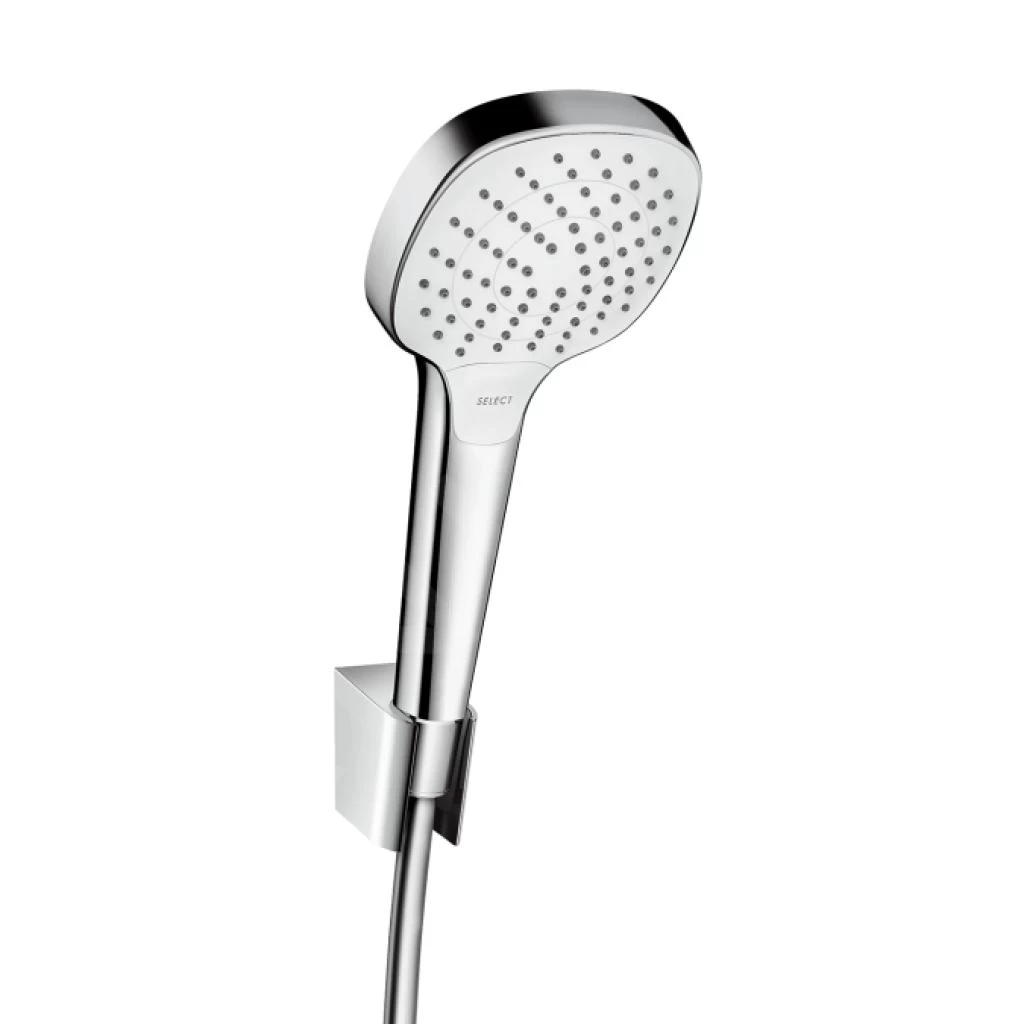 Allestite il vostro bagno con design e qualità di prim’ordine. Il mercato dell’idrosanitaria è vario e offre molte opzioni. Vi presentiamo questo elegantissimo set di doccetta, supporto e flessibile doccia hansgrohe Croma Select E, che donerá armonia, eleganza e sobrietá al vostro bagno.