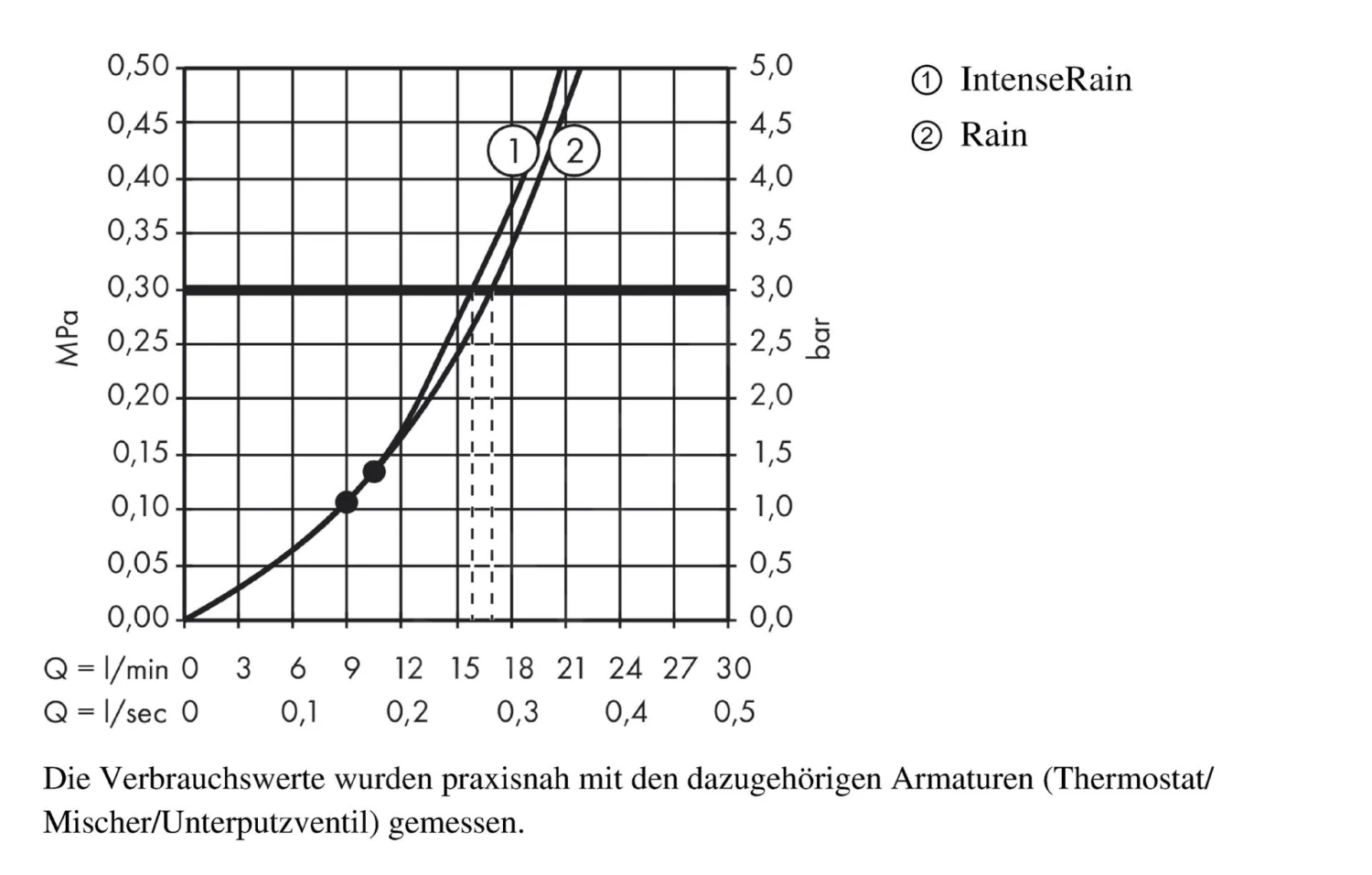 - portata del getto IntenseRain (a 0,3 MPa): 16 l/min