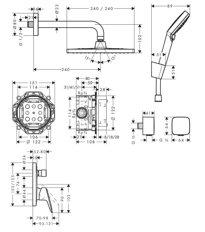 Set doccia con miscelatore a incasso per piacevoli momenti di benessere. Il set doccia Crometta di hansgrohe vi offre un’esperienza di doccia perfetta. La sera vi preparerà per il sonno e la mattina vi preparerà per affrontare la giornata. Questo set doccia Crometta dal design accattivante comprende un soffione da 240 x 240 mm con un tipo di getto Rain. 18 litri d’acqua al minuto scorrono attraverso il soffione. Il set doccia hansgrohe Crometta è dotato della doccetta Crometta Vario con un diametro di 100 mm. Offre due tipi di getti – Rain e IntenseRain. 13,8 litri di acqua al minuto scorrono in questa doccia. Il set comprende anche un miscelatore da incasso per vasca da bagno Logis di hansgrohe. Si distingue per il suo design piacevole ed elegante. Il set doccia è completato da un gomito doccia FixFit e da un tubo doccia Isiflex di 1250 mm di lunghezza. Anche l’iBox è parte integrante di questo set doccia – è la base per il miscelatore da incasso.