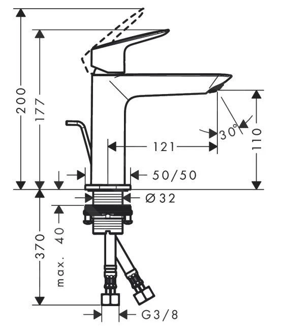 - lunghezza del braccio di erogazione: 121 mm