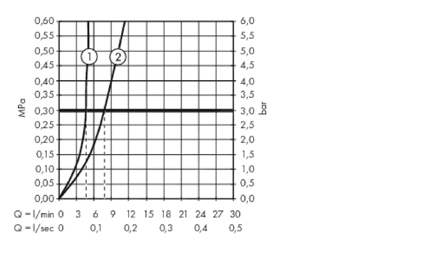 - portata a 0,3 MPa: 5 l/min