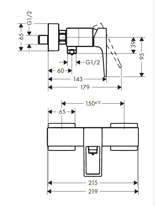 - spaziatura centrale: 150 mm ± 12 mm