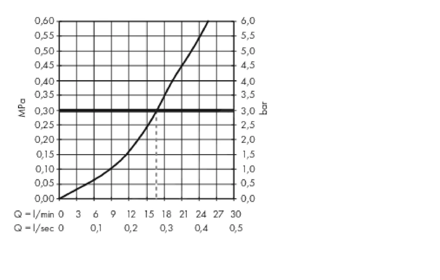 - flusso a 0,3 MPa: 22 l/min