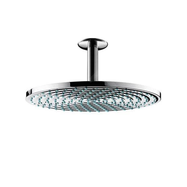 Il design circolare ridotto della pioggia a pioggia diventerà un elemento attraente in qualsiasi bagno. È intonato a molte docce e miscelatori Hansgrohe grazie alla linguetta dal design moderno. Ad esempio, il soffione doccia a pioggia si può combinare perfettamente con la doccetta a mano Raindance con disco circolare piatto. La doccia a pioggia è realizzata sia dentro che fuori con componenti di alta qualità. Il disco doccia e la connessione a soffitto sono realizzati completamente in metallo cromato. Sono quindi molto solidi, lucidi e facili da pulire.