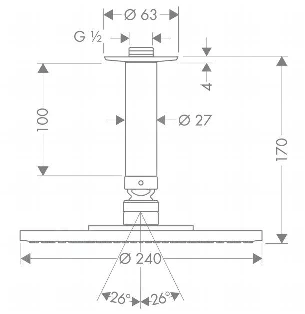 Il soffione doccia a pioggia Hansgrohe Raindance S 240 Air a getto singolo ha una connessione doccia a soffitto (100 mm) ed è perfetto per l’ammodernamento e il miglioramento delle docce spaziose. Il grande soffione della doccia offre tanto piacere per la doccia.