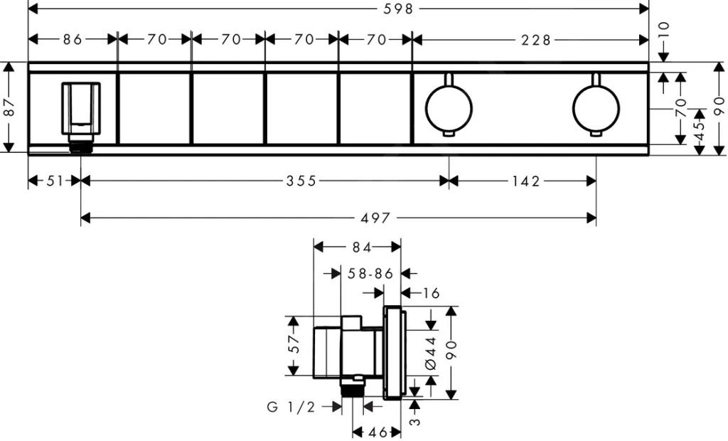 maniglie, manicotti, rosetta, unità di miscelazione, pulsanti, valvola di non ritorno