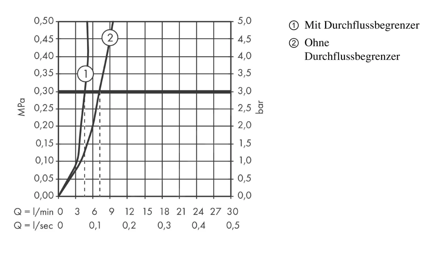 - portata a 0,3 MPa: 5 l/min