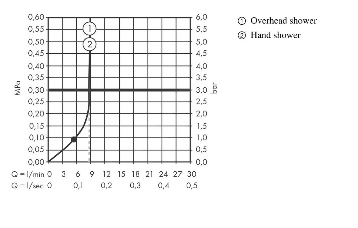 - EcoSmart, portata massima a 3 bar: 8,7 l/min