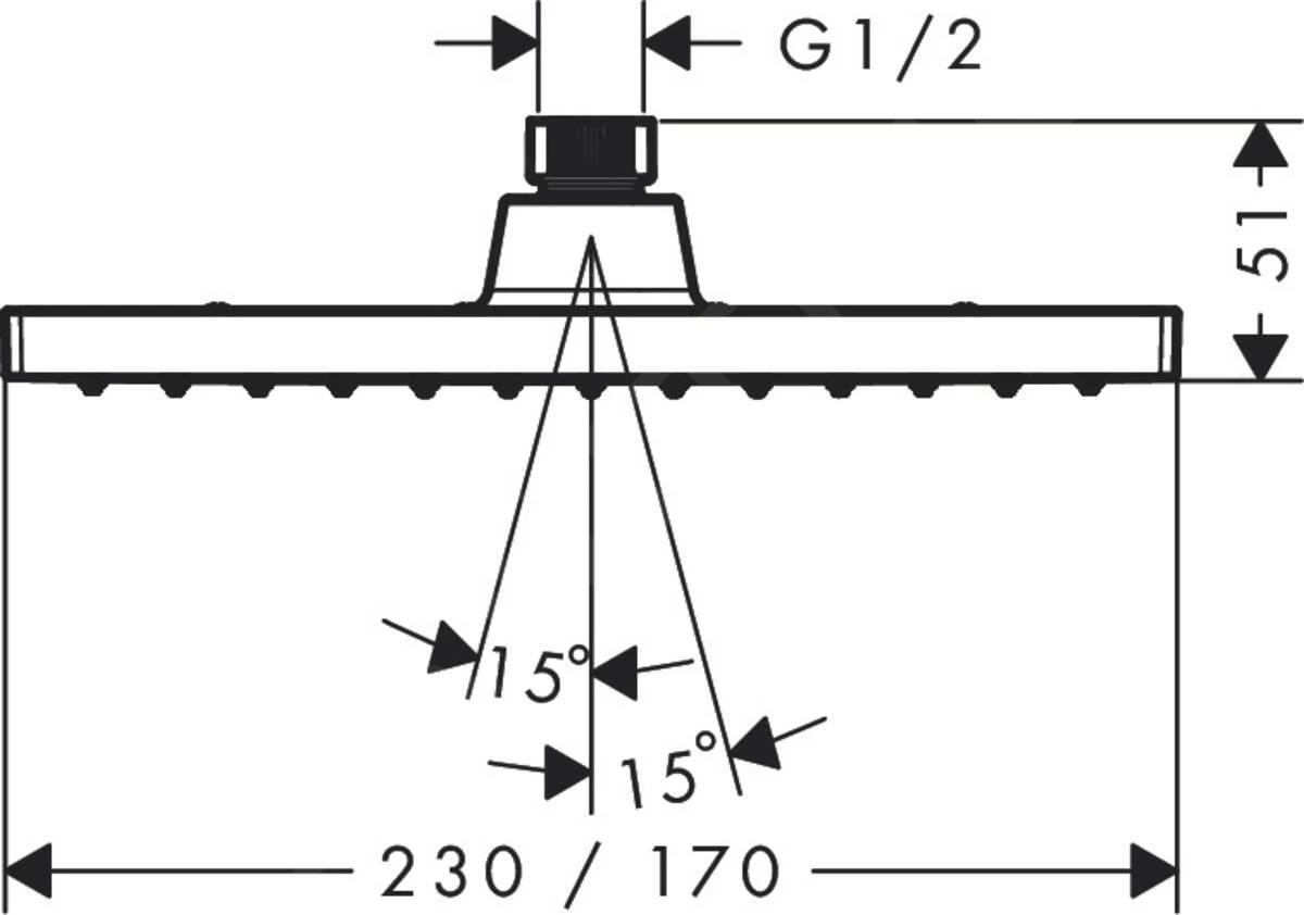 - dimensione del soffione doccia: 230 x 170 mm