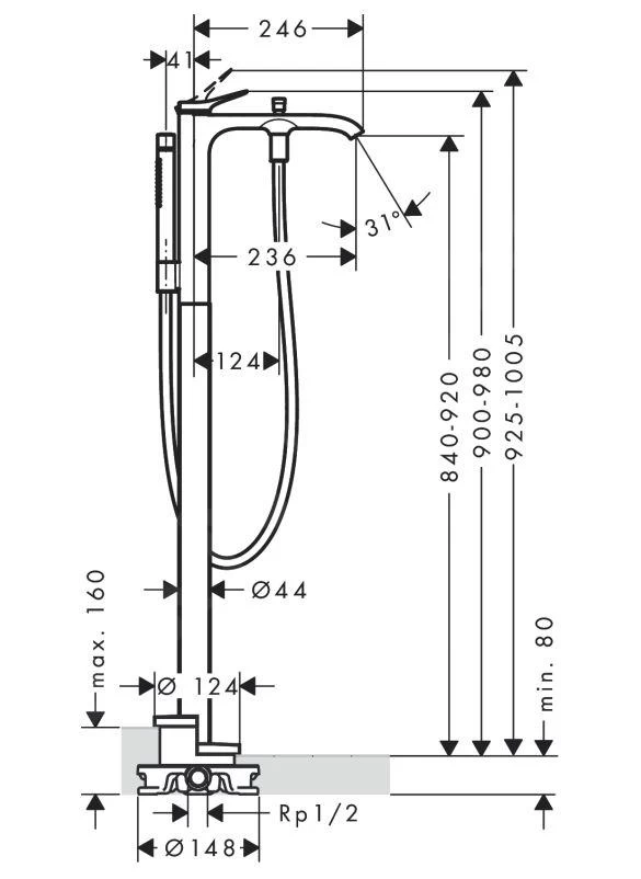Rubinetto a pavimento Vivenis per vasca da bagno, senza corpo incasso