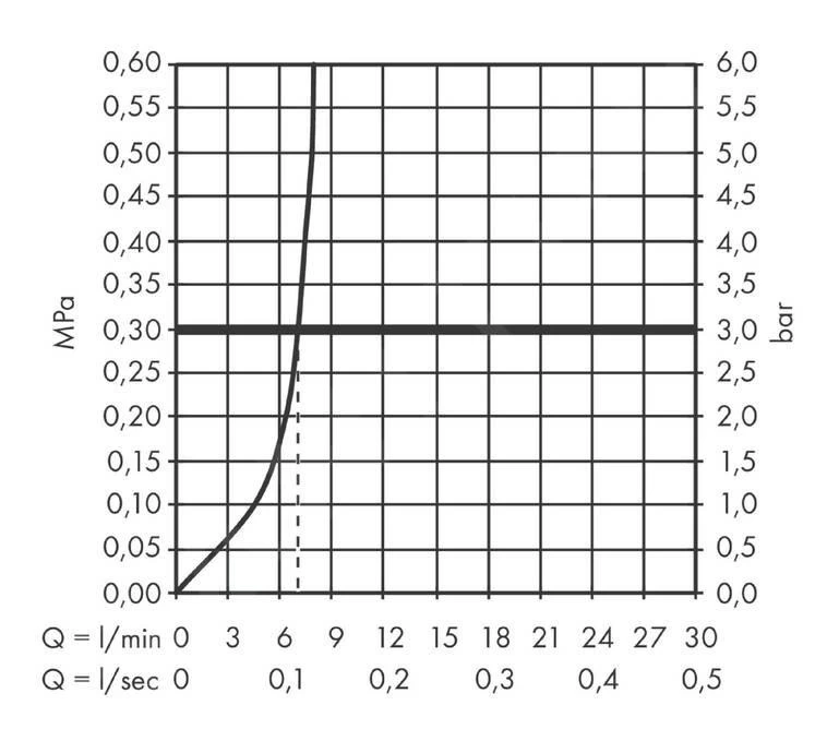 - portata massima: 7,5 l/min (pressione 3 bar)