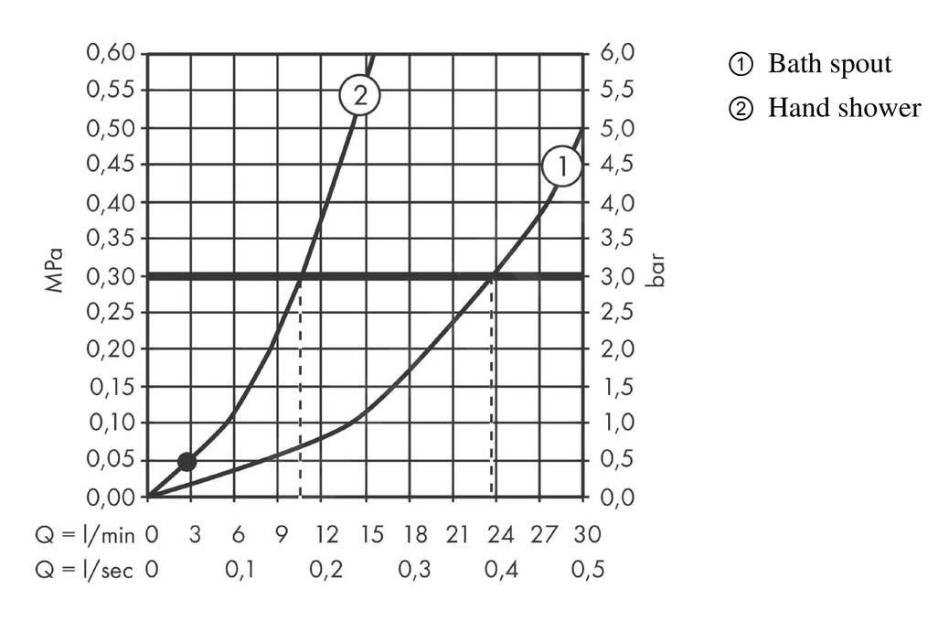 - portata della doccia: 9,5 l/min (pressione 3 bar)